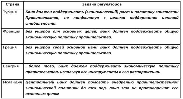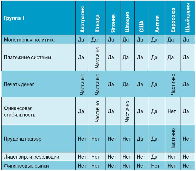 Таблица 1. Полномочия центральных банков в развитых странах мира