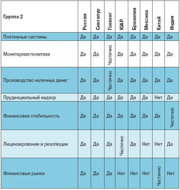 Таблица 2. Полномочия центральных банков стран БРИКС и дальневосточных экономик открытого типа