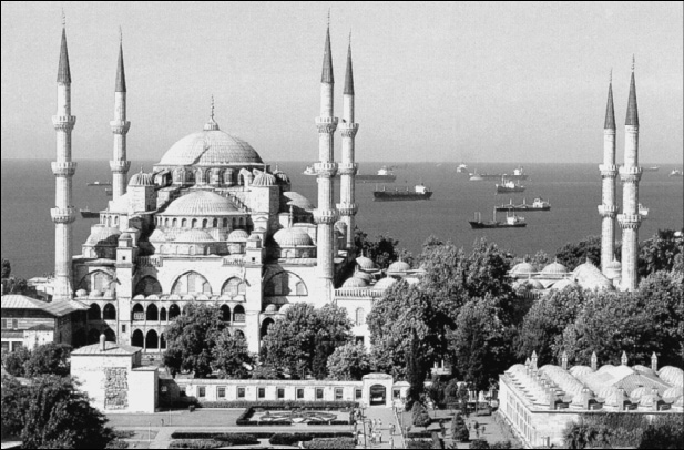 Самая знаменитая мечеть Стамбула – мечеть султана Ахмеда – построена в 1609–1617 годы архитектором Мехмедом-ага (учеником Синана) на месте бывшего дворца византийского императора, напротив Святой Софии. Строительство мечети началось по распоряжению султана, которому было тогда 19 лет. По преданию, он хотел из-за некоторых грехов юности умилостивить Аллаха. К тому же он подписал с одним из правителей династии Габсбургов договор, в котором признавал того равным себе. Это, видимо, и было решающим моментом: султан счел себя обязанным публично проявить свою веру и особую приверженность исламу.