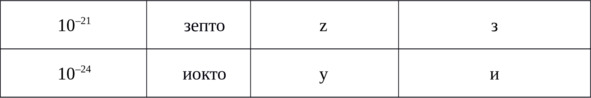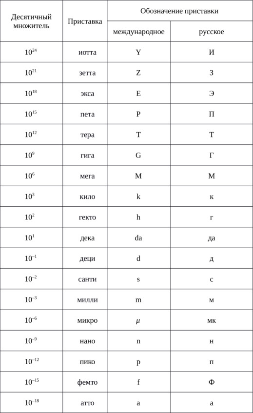 Множители и приставки, используемые для образования наименований и обозначений десятичных кратных и дольных единиц