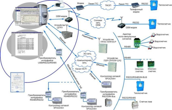 Рисунок 3.9 – Пример информационно-измерительной системы тепловой, электрической энергии, количества теплоносителя и холодной воды