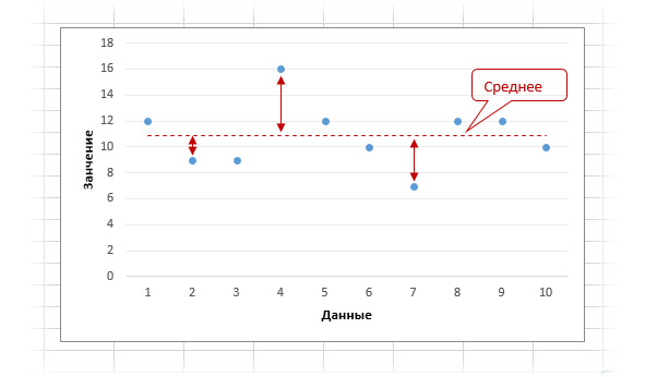 Среднее значение – это обычная средняя арифметическая величина. Рассчитаем её: