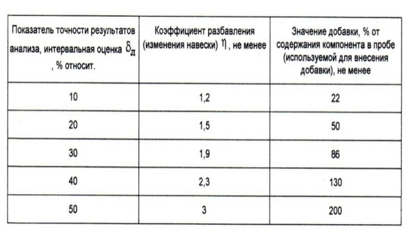 Метод добавок, метод разбавления пробы используют при наличии условий для создания проб с введенными добавками и разбавленных проб, адекватных анализируемым пробам, и при отсутствии возможности по условиям методики анализа или экономической нецелесообразности применять другие способы контроля точности (табл. 4.2).