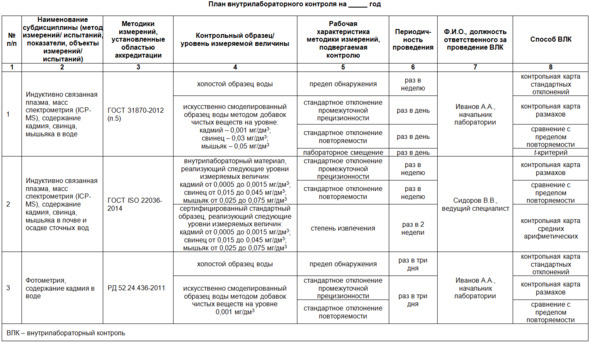 Примерный план внутрилабораторного контроля