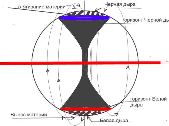 Втянутая материя в черную дыру проходит Горнило, преобразуется, и выбрасывается обратно в систему – круговорот в природе, цикличность процесса.