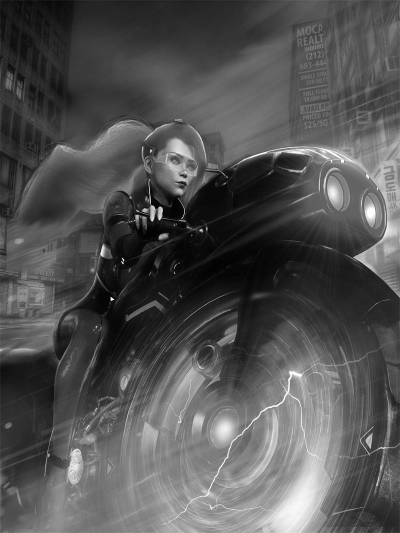 Резкий поворот. Магоцикл так накренился, что между моим коленом и асфальтом оказалась лишь пара дюймов. Но я выровнялась. А через долю секунды на этом же повороте черный тонированный чабиль ушел в виртуозно управляемый занос и так же выровнялся, почти не потеряв в скорости.
