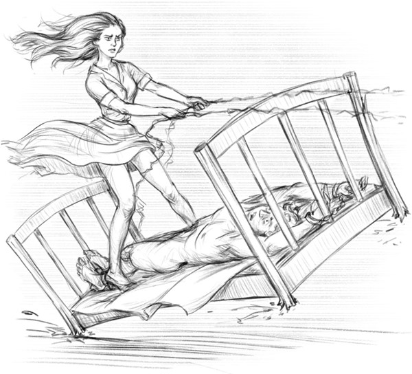 Я вскакиваю на постель, упираясь в одеяло ногами. И чувствую сильный рывок, едва не выдергивающий плечо из сустава.