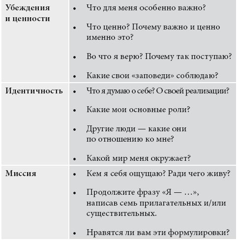 Именно поэтому дальше я предлагаю вам упражнение «Точка отсчета» на основе пирамиды потребностей, которую сформулировал Роберт Дилтс[1]. Она поможет вам понять, что именно вас не устраивает в вашей нынешней ситуации и какие перемены нужны для того, чтобы будущее было таким, каким вы желаете его видеть.