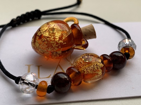 В браслетах и аромакулонах янтарь представлен в серии Хозяйка: состояние женщины, от которой невозможно уйти, все дороги от неё и к ней. Забота и достаток, практичность и бережливость, созидание и построение всех жизненных сфер. Словно Золотая осень, красота которой зачаровывает, тёплое дыхание Земли.