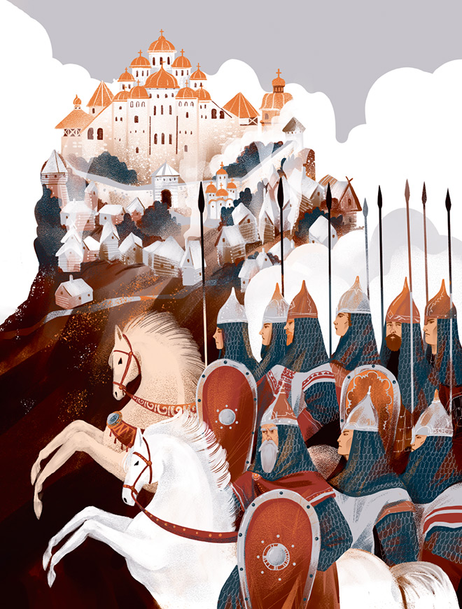 Корабли викингов – драккары – передвигались с помощью весел. Гребли на них сами воины – во-первых, действовать приходилось слаженно, а во-вторых, так было теплее, ведь в северных землях очень холодно. И вот гребцов-то и называли русью. Так что русь – это не только народ, но и профессия: княжеский дружинник, воин. Знаем мы об этом, в частности, из договора одного из князей, Олега, с греками. Там отдельно прописаны права руси и права славян. И речь, как понятно из текста, шла не столько о двух народах, сколько о двух профессиях. Русью в нем названы воины, а славянами – купцы (и, возможно, представители других сугубо мирных профессий).