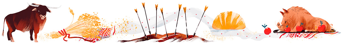 Часть принесенного в жертву животного съедали сами люди – таким образом они делились своей пищей с богами. Но это не значит, что люди считали себя равными богам и садились с ними за один воображаемый стол, как мы садимся с семьей по праздникам. В совместной трапезе человек видел надежный способ установить связь с потусторонними силами. Отголосок этого обычая дожил и до наших дней. Банкет или фуршет – непременная часть любого важного события, на котором собираются единомышленники, будь то дипломатическая встреча, научная конференция, премьера спектакля или открытие выставки.