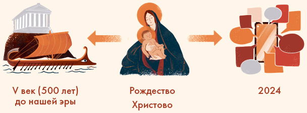 Время до рождения Христа отсчитывают в обратную сторону. И если мы говорим, что событие произошло в V веке до нашей эры, то значит, оно случилось примерно две с половиной тысячи лет назад. А если в X веке до нашей эры, то более трех тысяч лет назад.