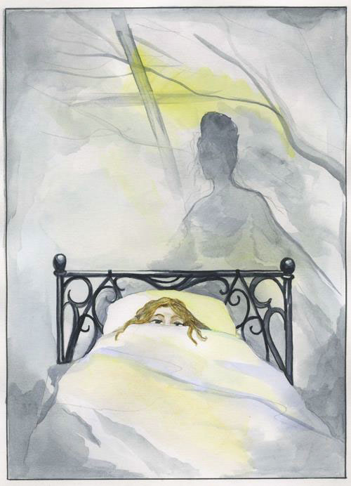 …Дождь лил три дня. Три дня шумел порывистый ветер. Он словно рвался в дом, чтобы добраться до девочки, выл в трубах и кидал на окна ветви старого тополя, что рос совсем близко от дома. Казалось, он хотел разбить стекло и ворваться в комнату, чтобы добраться до девочки. Ночью Энни просыпалась в тревоге. Ей представлялось, что кто-то посторонний находится в её комнате. Она вглядывалась в темноту, боясь пошевелиться, и ей мерещилось полупрозрачное видение, похожее на женщину с высокой причёской. Оно протягивало к девочке руку, будто зовя к себе. Энни неподвижно лежала, натянув одеяло до кончика носа, крепко сжав его края. Она мысленно твердила себе: «Это всего лишь свет фонаря. Он пробивается сквозь разметавшиеся на ветру ветви старого тополя за окном. В этом совершенно нет ничего страшного. Хотя в следующий раз я, пожалуй, оставлю включённым ночник на всю ночь. Так, на всякий случай».