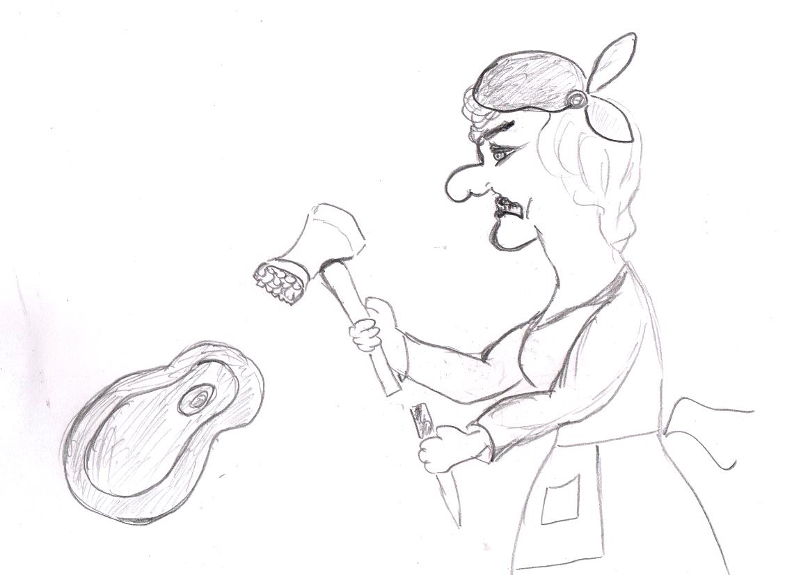 Вместе с молотком на сочный кусок будущей отбивной или полоски бефстроганов опускался её гнев, раздражение и прочие эмоции. Очень, очень эмоционально опускались.