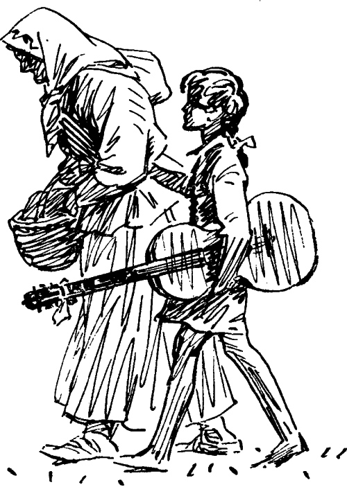 Сбежав на мостовую, девочка часто-часто семенит по мокрым, скользким камням.