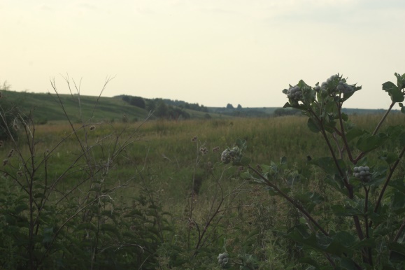 Путь наш пролегал западнее села Ославское, где поля обрамляет ручей и небольшая речка Соловуха. Берега речки утопают в зелени, и их украшает пара стареньких амбаров на сваях. Вид классический, исконно русский. Один из берегов – высокий, и этот контраст впечатляет. Не успеваем опомниться, как поле с речкой сменяется холмами. На одном из них поражает своим величественным видом возвышающийся на холме храм.