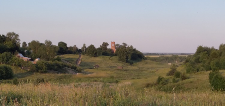 Нашей команде уединиться на берегу речки не удалось – летом, в жару на пляже оказалось слишком людно и шумно. Яблоку было негде упасть. Поэтому, воспользовавшись редкими свободными минутами, мы отправились купаться. А точнее – ходить по воде. На этом участке Нерли в Ославском просто удивительное мелководье. Даже дети переходят ее вброд. А с берега открываются панорамные виды на Ославское, архитектурной доминантой которых является дом, напоминающий старую водонапорную башню во Владимире. Также отсюда открывается интересная перспектива на сельские дали – холмистые, зеленые поля. И мы отправились туда, прямо по извилистым рыхлым проселочным дорожкам.