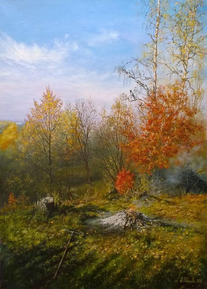 Картина "Осенний костер" масло / холст размеры 45 х 60 см. 2016 год