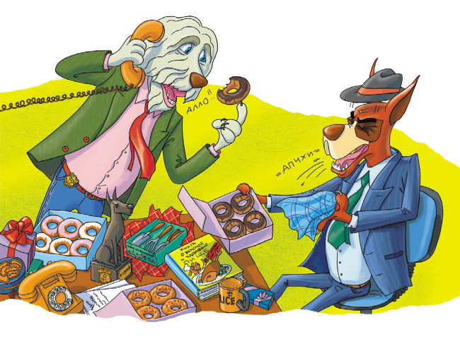 Чихал, ел пончик и снова чихал. Ел пончик, чихал и снова ел пончик. А у злодеев болели животы. От смеха над сыщиком.