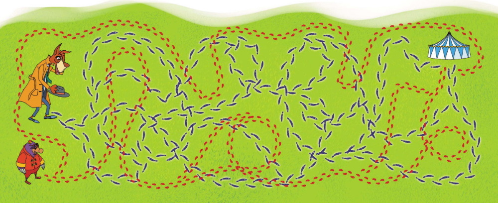 Помоги догу дойти до цирка так, чтобы его следы не пересеклись со следами «хвоста»