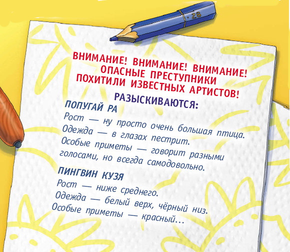 – Почему ты не пишешь? – удивился дог Шмитт. Крот щурился и смотрел за спину пса, словно пытался что-то разглядеть. – Пиши, не отвлекайся! Мы должны спасти циркачей от похитителей!