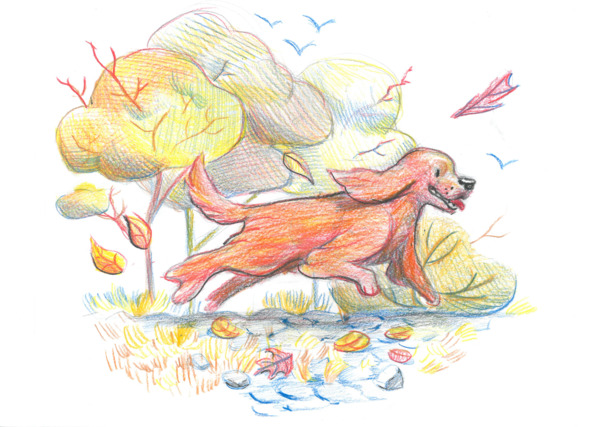 В осеннем парке раздавались прощальные голоса улетающих на юг птиц. Пескарик носился по аллеям, зарывался в желтые листья и ждал хозяйку. С веселым лаем он выпрыгивал ей под ноги, поднимая вокруг себя брызги осенних красок. Маша звонко смеялась.