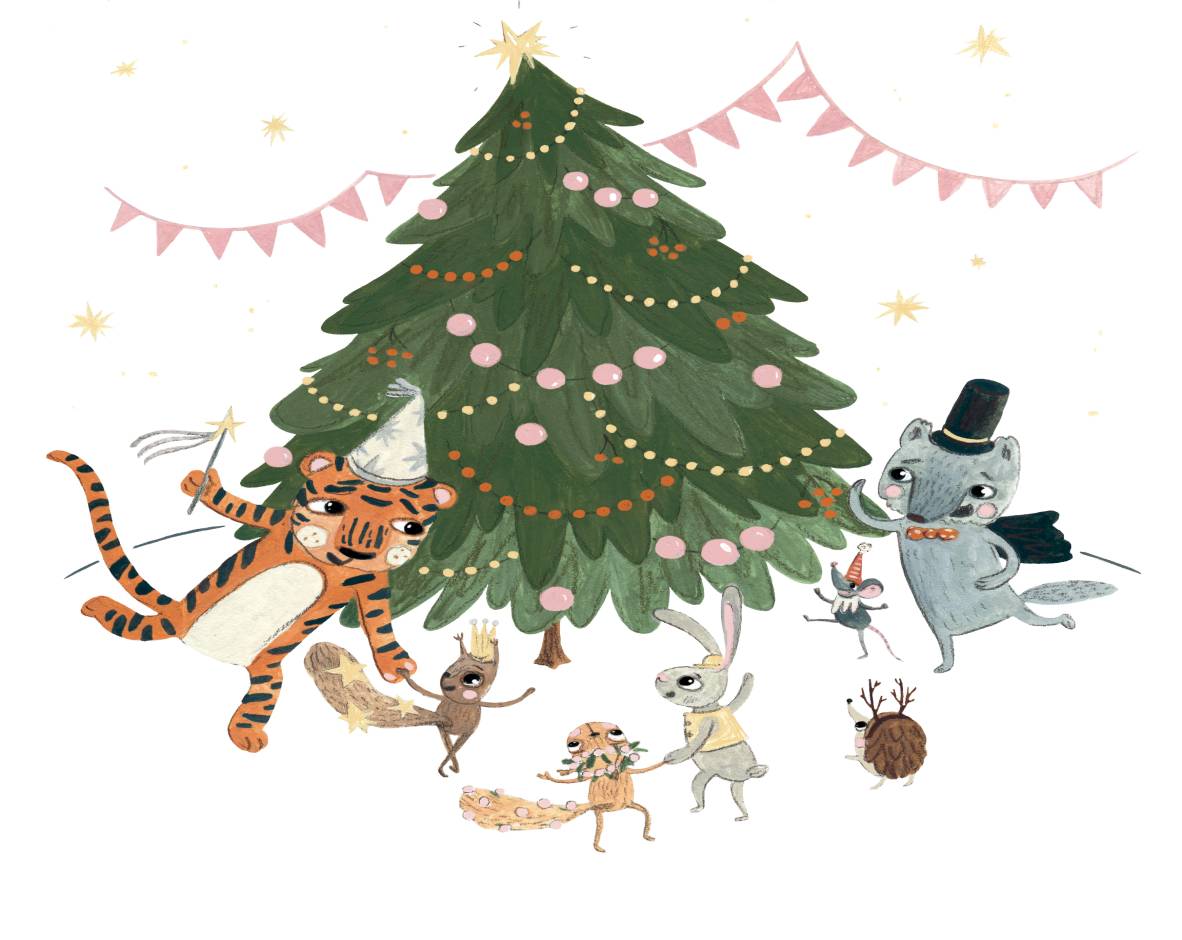 На одно мгновение Бони решил, что ему здесь не место, его все боятся, как вдруг зажглась, заиграла всеми огнями елочка, заискрились гирлянды на ее ветвях, и ярким светом вспыхнула звезда на макушке. От света тигренок зажмурился, улыбнулся и мурлыкнул от удовольствия.