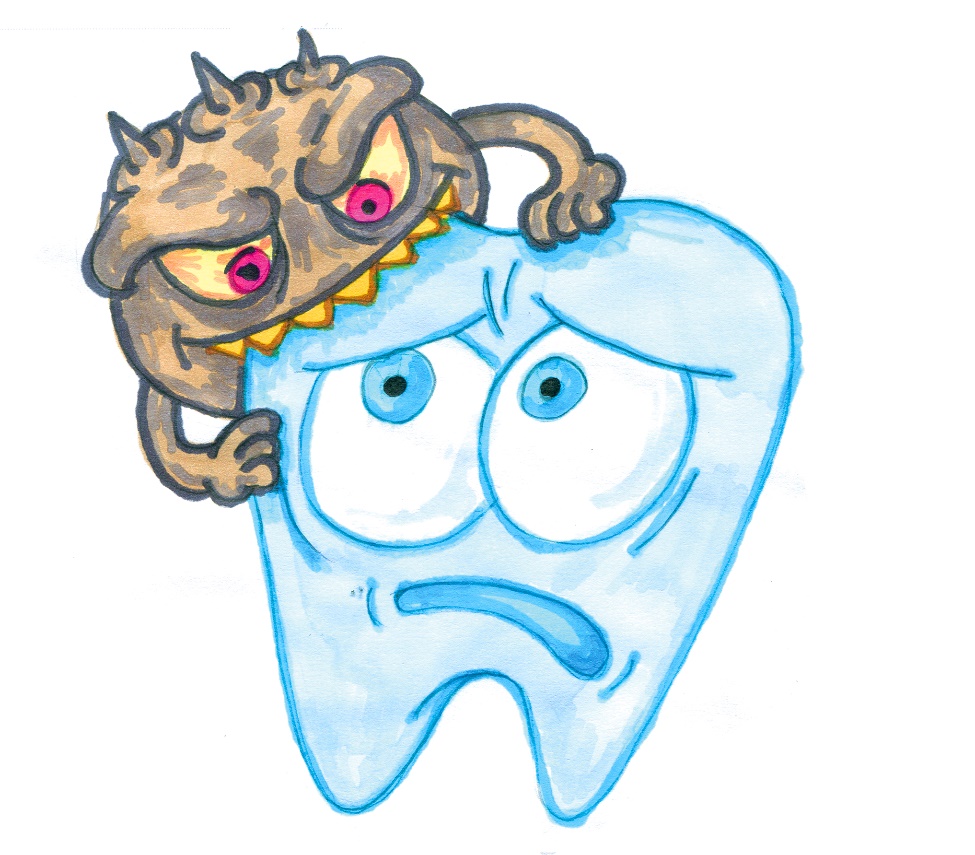 И также неприятно похихикивая, начали они гулять по зубкам Машеньки. При этом кариозные монстрики ничего не боялись, ведь зубная щётка и зубная паста так и остались лежать за умывальником.