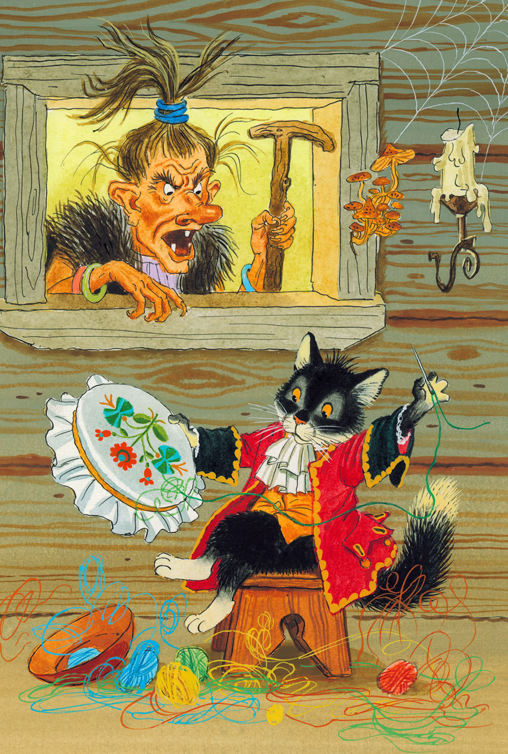 Отошла Баба-Яга от окошка… Смотрит девочка, а по горнице кот ходит. Сам чёрный, глаза жёлтые, хвост трубой. Ходит, жмурится, усищами шевелит, когтищами по половицам поскрёбывает.