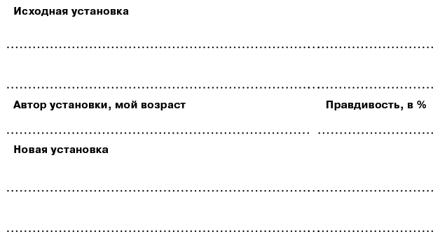 Тогда я предложила Регине оценить, насколько записанные ею фразы соответствуют действительности и характеризуют ее сегодняшнюю. А затем попросила переписать эти установки по-новому – так, чтобы они ее больше не ограничивали.
