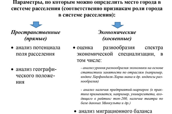 Диагностика типов городов в системе расселения может быть проведена различными способами (рис. 1).