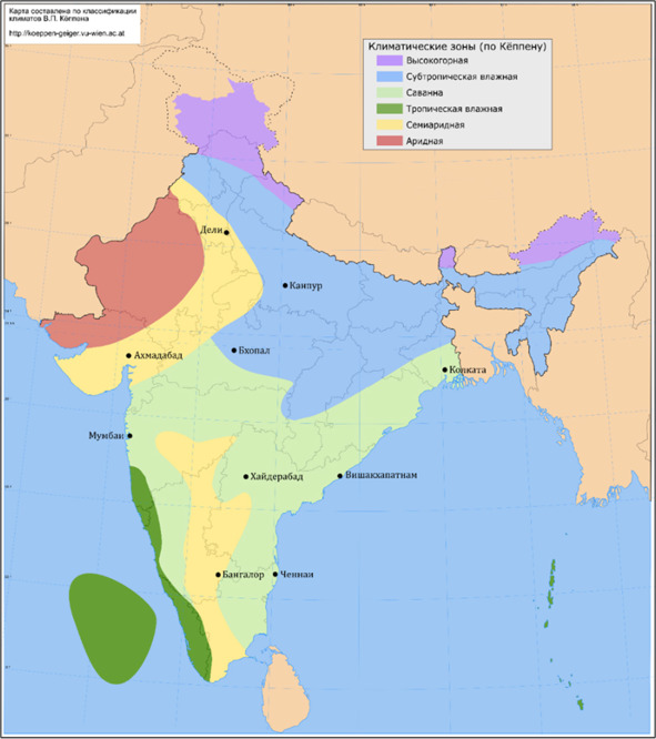 Адаптировано авторами по: https://commons.wikimedia.org/wiki/File:India_climatic_zone_map_en.svg