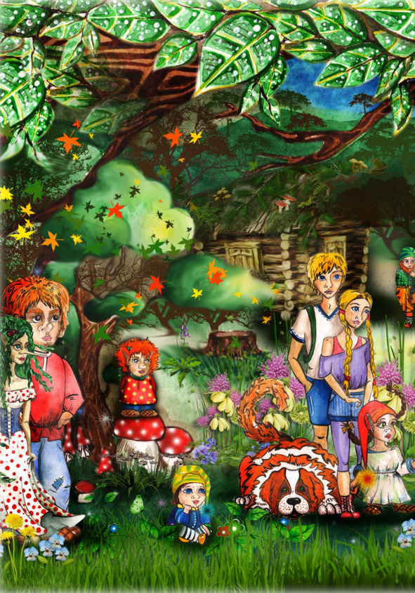 – Здравствуйте! Наша большая семья гномов живёт в лесу. У нас есть Медведь-гора, пруд Хрустальный и мельница стоит на Заячьем Ручье. Самый старший в семье мой дедушка Аполя, Аполлинарий, значит. Он – профессор и изобретатель. Много разных вещей придумывает, ночи не спит. У него большая лаборатория, где он что-то всегда опробывает и проверяет. Там не только разные машины, приборы стоят, но и баночки разные,