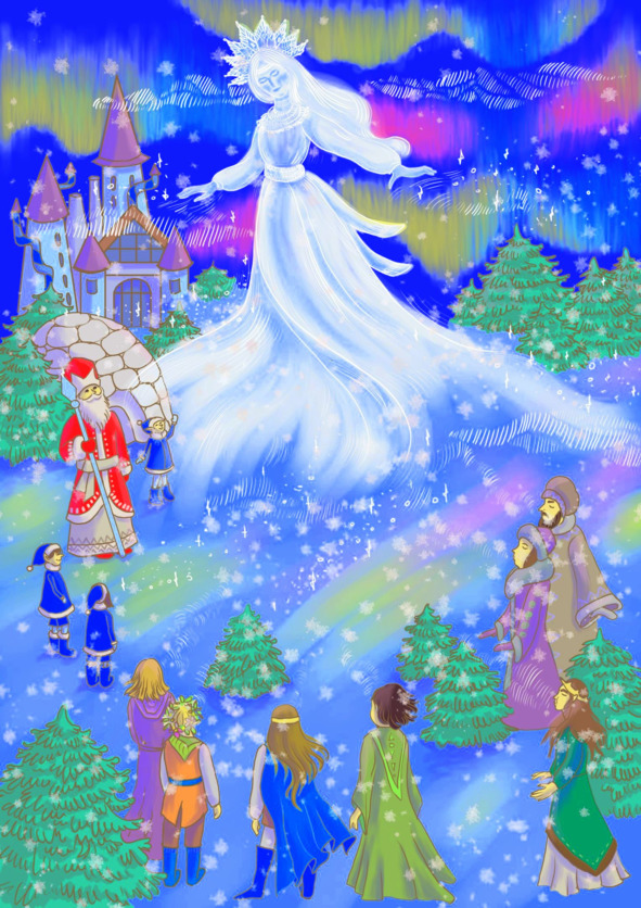 Эльфы прильнули к большим окнам, некоторые даже выбежали на улицу, когда загорелось Северное Сияние и на его фоне, как в дорогих декорациях, стала танцевать Метелица! С каждым «па» из под её ног взлетали и кружились снежинки, одна не похожая на другую.