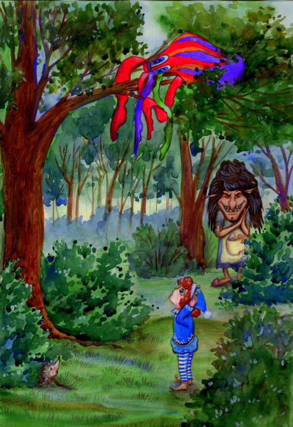 Николка оглядывался по сторонам. Всё для него было ново и интересно. Правда, немного, загадочно и страшновато в этом месте. Во-первых, в лесу ему стало жарко в тёплом голубом костюмчике. Во-вторых, здесь чувствовались разные незнакомые запахи, от которых, с непривычки, закружилась голова маленького эльфа. Особенно сильно пахли какие-то крошечные шарики на зелёной палочке. В-третьих, очень пугал вид этой большой носатой неряшливой старушки, которая смотрела на него и жутко улыбалась, показывая крупные неровные жёлтые зубы. Но он был эльф. А эльфы не должны ничего бояться! Маленький Николка выпутался из верёвочек, ещё недавно летавшего, осьминога, подошёл и вежливо поклонился. Так поступать его учила старшая сестричка Еленька.