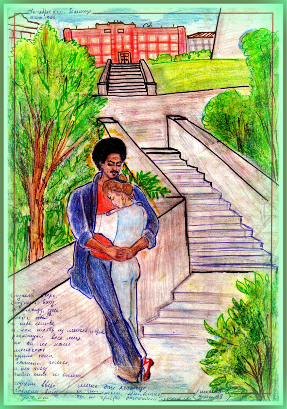 Ступени вверх,Ступени вниз,а между, здесь —мы с тобой —и неба синева,и как шатёр из листьев и травыраскинулся весь мир,но он не наш —мелькаютчужие лица,слышны голоса, и, как хочу,любить тебя не смею.Ступени вверх,ступени вниз —для нас —лишь эта лестница,и мы стоим обнявшись,ты на руках баюкаешь меня.Ожившие часы —биенье сердца,А время спит:секунда,часИль векМне всё равно.Я наконец-то дома,ведь ты мой дом,всё, что мне нужно – ты.Отсюда Бог извлёк меня когда-тои Он же вновь вернул меня к тебе.Ты – мой Адам,Твоя навеки Евас тобой.Двоих Господь нас воскресил.А воскресив, всё воссоздал, как было:из двух —односвятое существо.