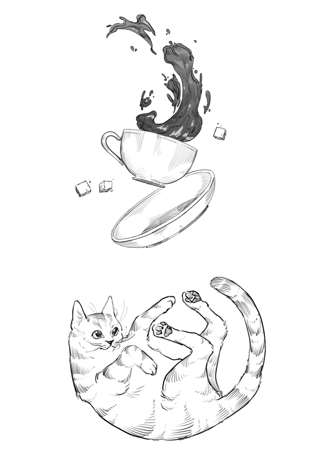 С книжной полки открывался обзор на все кафе. Три столика для гостей, у каждого – по два стула с мягким сиденьем из плотной ткани (такая отлично подходит для точки когтей). Само помещение на удивление просторное – как кухня и гостиная в квартире Митиру, вместе взятые. Снаружи домик кажется меньше. У стены напротив меня – кирпичный камин, ни дать ни взять прямиком из сказки. На каминной полке стоят какие-то диковинные заграничные сувениры.