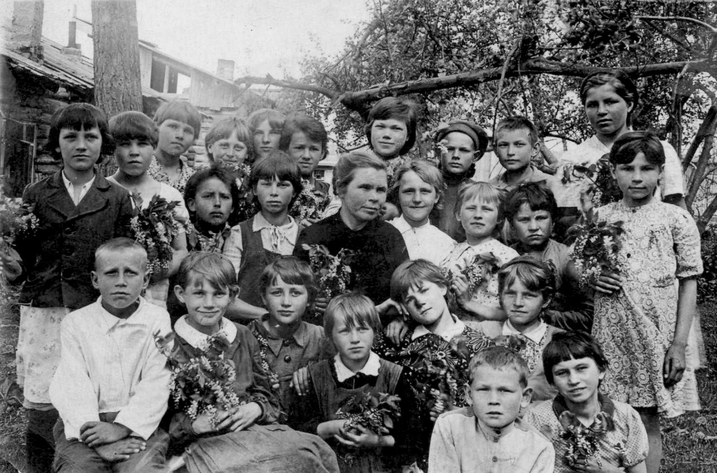 Ада Филипповна в центре фото первого класса, которое я получила из Маслянинского краеведческого музея. С большим интересом его разглядывала, пытаясь вспомнить имена, фамилии и лица моих соучеников. Себя я нашла в нижнем ряду третьей слева. Первым сидел мальчик в белой рубашке Володя Петров, единственный владелец коробки цветных карандашей, он никому кроме меня их не давал. Возможно, потому что был другом моего брата, а может быть (более лестный для меня вариант), я ему нравилась. Рядом с ней моя подруга по парте Шура Пилипенко. Других фамилий вспомнить не удалось, хотя некоторые лица и имена помню.