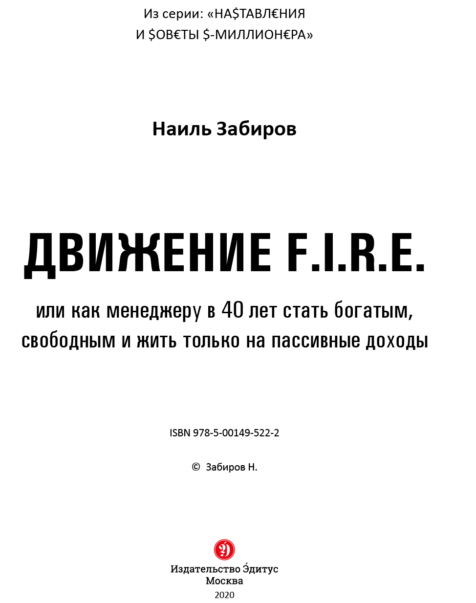 Движение F.I.R.E. или как менеджеру стать богатым, свободным и жить только на пассивные доходы / Наиль Забиров. –