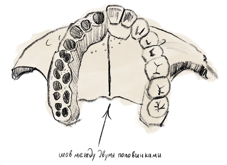 Ко мне обратилась коллега, врач-стоматолог. У нее было небольшое несращение губы. В детстве ей сделали операцию, и, если внимательно присмотреться, у нее были видны шрамы на губе и десне. Сами по себе эти шрамы девушке не мешали, и пришла она по другой причине. Дело в том, что из-за аномалии у нее был один сверхкомплектный, т. е. лишний, зуб в области одного из шрамов, к тому же неправильной шиловидной формы, тонкий и узкий. Из-за него все остальные зубы на верхней челюсти сместились влево.