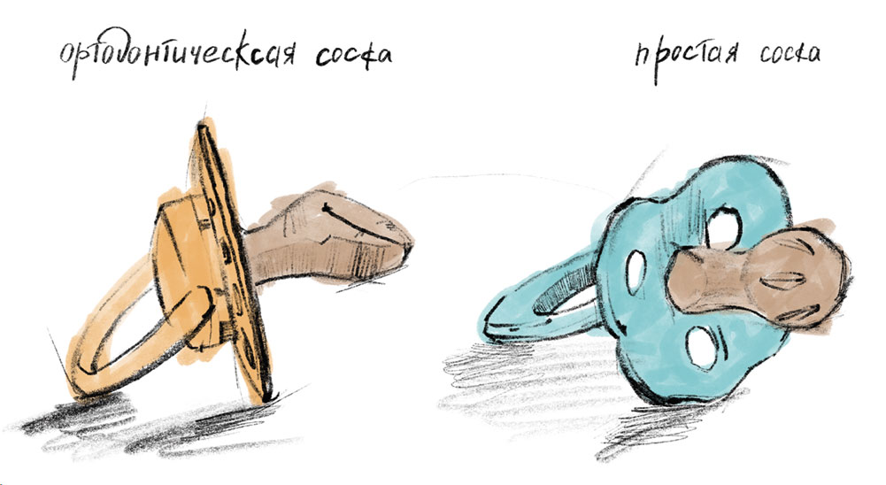 Дочка моей родственницы выросла на искусственном вскармливании и очень любила свою соску неправильной формы, жесткую и длинную. Когда ей исполнилось два года, они с мамой пришли к нам в гости. Я обратила внимание на прикус девочки (сказывается моя любовь к профессии, увы, не могу не замечать таких вещей даже в обычной жизни). Я увидела, что нижняя челюсть ребенка была слишком маленькой для этого возраста, а верхняя – суженной. Я объяснила родственнице, почему такое могло произойти.