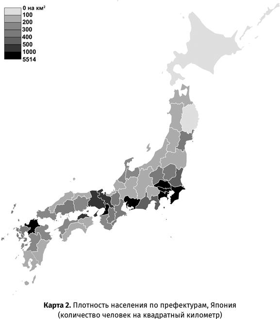 Около 80 % суши в Японии занимают горы, на удивление лесистые. В горах расположено множество вулканов, как спящих, так и действующих, поэтому в Японии в изобилии термальные источники и часты землетрясения: в год случается до 1000 толчков. Гора Фудзи – самая высокая гора Японии, 3776 метров над уровнем моря, – представляет собой вулкан, который последний раз извергался в XVIII веке. Особенно активным он был с VIII по XII век, и тогда его считали злым божеством, однако в наши дни Фудзи – важный живописный символ национальной идентичности[2]. Не более четверти территории Японии считается пригодной для жизни, поэтому поселения компактно расположены вдоль берегов Тихого океана, Японского моря и Внутреннего моря, в долинах рек, на редких равнинах, особенно на равнине Канто на северо-восточном Хонсю, где находится Токио, и на равнине Кинай в Центральной Японии, где расположены города Киото, Нара и Осака. В настоящий момент более трех четвертей японцев живут в густонаселенных городах на этих территориях, тогда как сельские регионы населены гораздо меньше. До появления современной транспортной системы перемещение по горам было затруднено, вследствие чего диалекты, жизненный уклад, производимая продукция и животный мир весьма различаются по регионам.