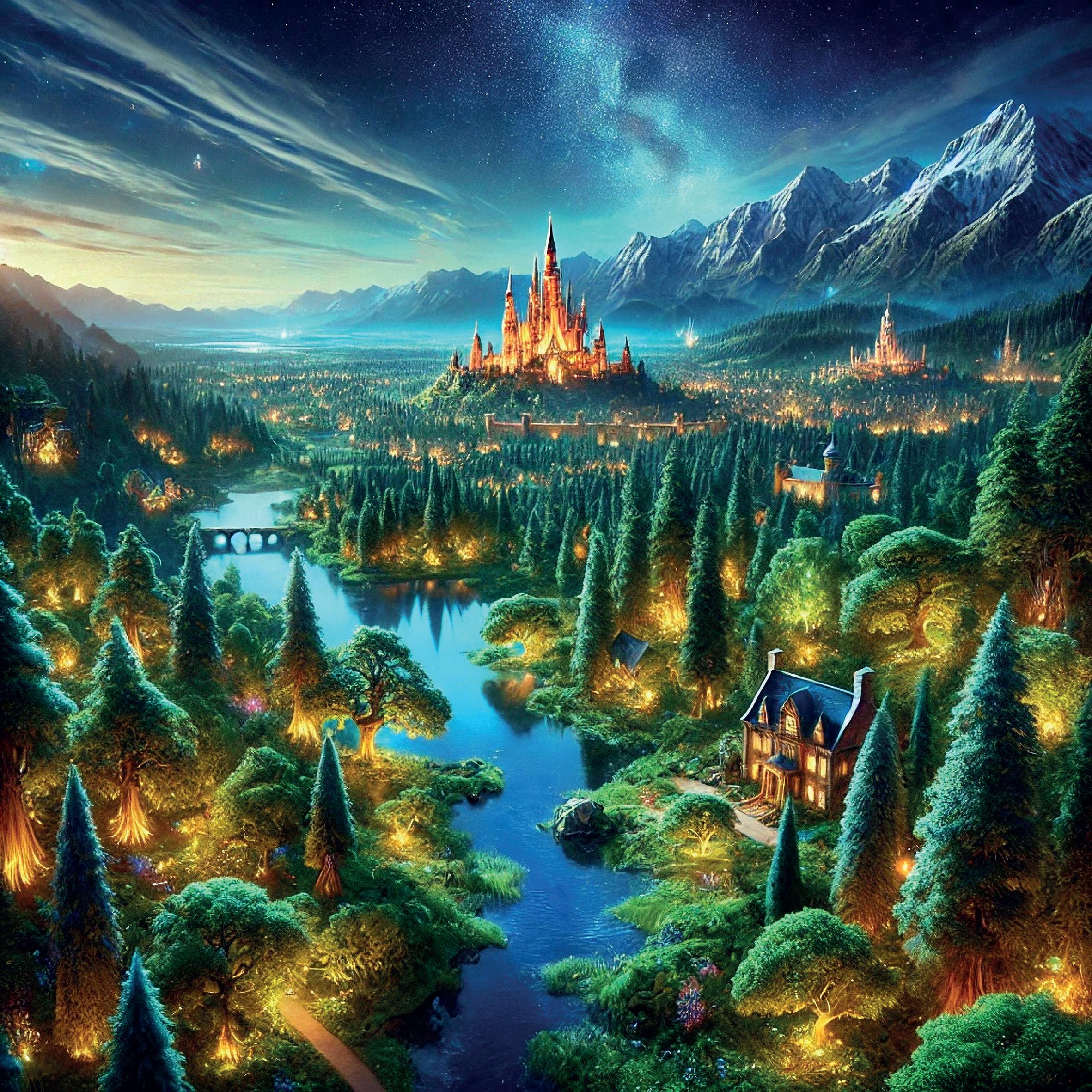 Открыв глаза, она тут же спустилась на землю и увидела потрясающий пейзаж. Перед ними стоял высокий лес с необычными деревьями. Это были гигантские раскидистые чинары, на ветвях которых сидели кошки разных размеров и цветов. Они будто охраняли его. У подножья деревьев росли прекрасные цветы, которых девочка никогда не видела. Они переливались всеми цветами радуги. Внутри каждого цветка сверкали звездочки, такие как на небе. В глубине леса виднелся небольшой водопад, подойдя ближе можно было заметить много мелких рыбок в серебряной и золотой чешуе. По лесу летали прозрачные бабочки с длинными хвостами-перьями. Их можно было заметить, только если внимательно приглядеться.