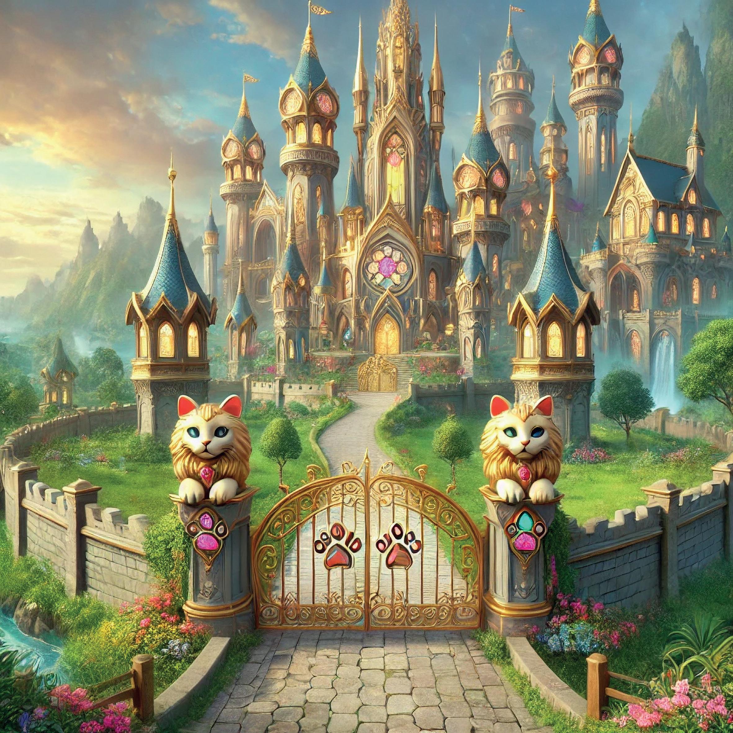 Они шли по роскошно украшенному замку, кошечки, которые встречали их, были в очень красивых нарядах. На них были жемчужные украшения, шелковые бантики и прозрачные накидки, расшитые золотыми нитями. Ноза не могла оторвать глаз от всей этой сказочной обстановки.