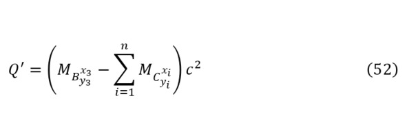 Exactly as the analysis was carried out for reaction (1), a similar algorithm is carried out for reaction (51), but, of course, the Coulomb barrier is not determined, since there is no directed particle for this reaction, therefore the yield of this reaction (52) is determined, and then the kinetic energy for all reaction products (53).
