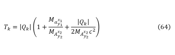 In this case, for the nucleus, the kinetic energy and the temperature generated from it are explained by means of the already derived patterns for the formed part (56) and for the entire target (57), and for light particles, the kinetic energy is known, as well as the charge through (58) and current (59).