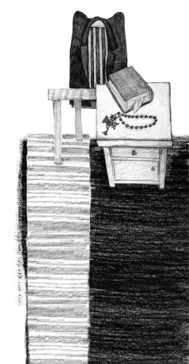 – Этот бегемот – я? – спросила она, тыча локтем (руки были в мыльной пене) в свой портрет. И пустила слезу. Покончив со стиркой, она выпросила у деда рисунок и повесила над изголовьем своей кровати, слева от распятия. Справа от распятия покачивались ее четки с еще целым крестиком.