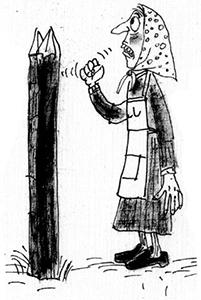 Тетивалины выпученные глаза грозно торчали в ответ по ту сторону деревянного забора. Потому что если Ба была достаточно высокой и видела тетю Валю как на ладони, то маленькой тете Вале приходилось унизительно вытягивать шею и вставать на цыпочки, чтобы смотреть своему ярому оппоненту в глаза.