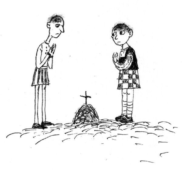 Мы в задумчивости уставились на могилку. Потом, как по команде, подобрали два деревянных прутика, сложили крест-накрест, обмотали травами, чтобы крестик не распался, и воткнули в одинокий холмик.