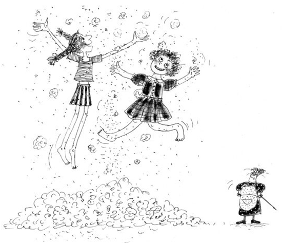– Ура, – запрыгала Манечка, – кругом лето, а у нас зима, вон посреди двора лежит целая куча снега!